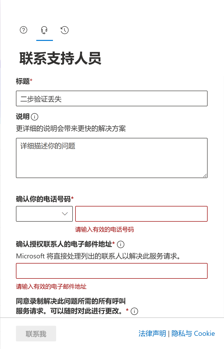 按照表单提示填写问题信息,最后点击联系我等待官方恢复工单处理解决即可,一般工作日24小时内能处理完成。(注意:联系信息必须为丢失二步认证的辅助邮箱及手机号,用于验证管理员账户的所有权)