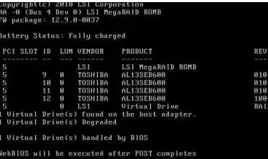 Ctrl+H进入阵列卡管理界面(WebBIOS)。